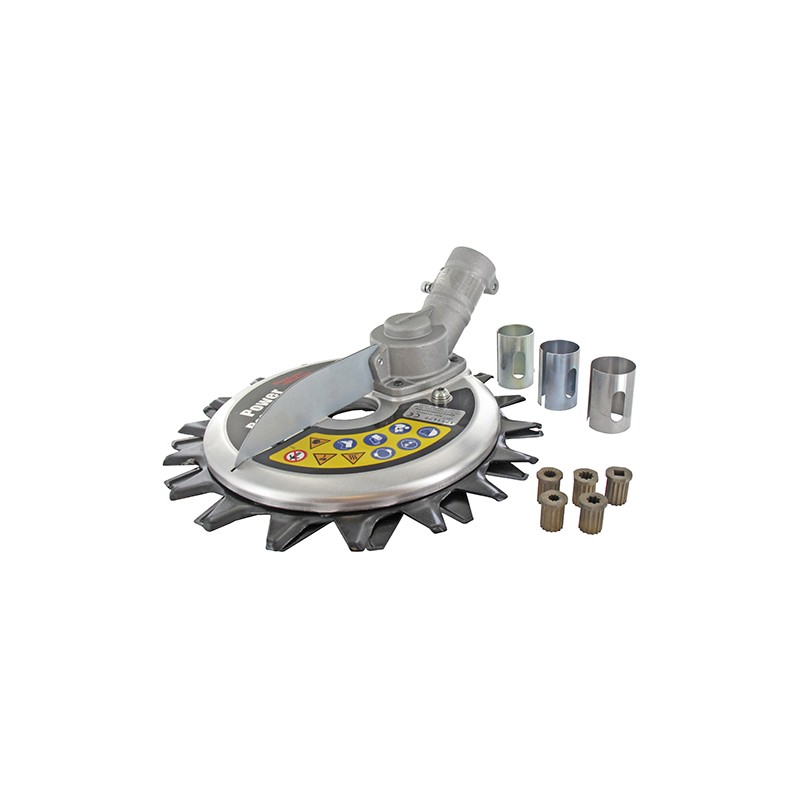 Disco circular profissional com 20 dentes de diamante, recomendado para o corte de erva. Disco com Ø255, furação Ø25,4 e com anilha de redução para furação Ø20.