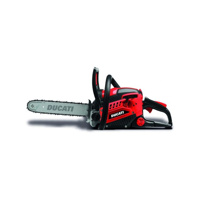 Tem um sistema patenteado de tensão rápida da corrente com um carreto em metal revestido a nylon, e uma lâmina de 40 cm.
